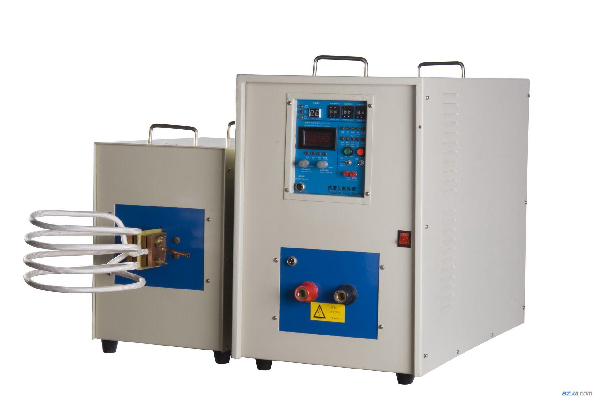 2、 在高頻機內由一整套獨特的電子線路,將從外接電源輸入進來的50Hz低頻交流電轉變成高頻20000Hz以上交流電;高頻電流加到電感線圈后,利用電磁感應原理轉換成高頻磁場,并作用在處于磁場中的金屬物體上;利用渦流效應,在金屬物體中生成與磁場強度成正比的感生電流,電流在金屬物體內流動時,會借助于內部所固有的電阻值,利用電流熱效應原理生成熱量,這種熱量是直接在物體內部生成的,所以,這種加熱方式,速度快,效率高。如果需要,它可在瞬間熔化任何金屬物。而且,它的加熱速度和溫度是可控的。