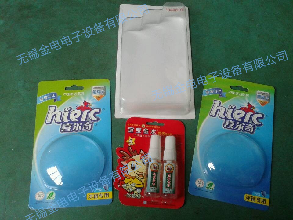 吸塑泡殼包裝工藝常見用于電子產(chǎn)品包裝、五金件包裝以及化妝品包裝等,其采用PVC片材或者PET片材利用吸塑模具通過自動(dòng)吸塑機(jī)成型的一種工藝,吸塑包裝封口采用高頻焊接工藝,根據(jù)泡殼形狀大小制造高周波吸塑模具通過高頻加熱封口包裝;無(wú)錫金電電子根據(jù)吸塑包裝封口需要生產(chǎn)單頭推盤式和單頭轉(zhuǎn)盤式設(shè)備,特別針對(duì)環(huán)保型吸塑泡殼封口要求研發(fā)高周波熔斷機(jī)設(shè)備,封口切邊一次完成。